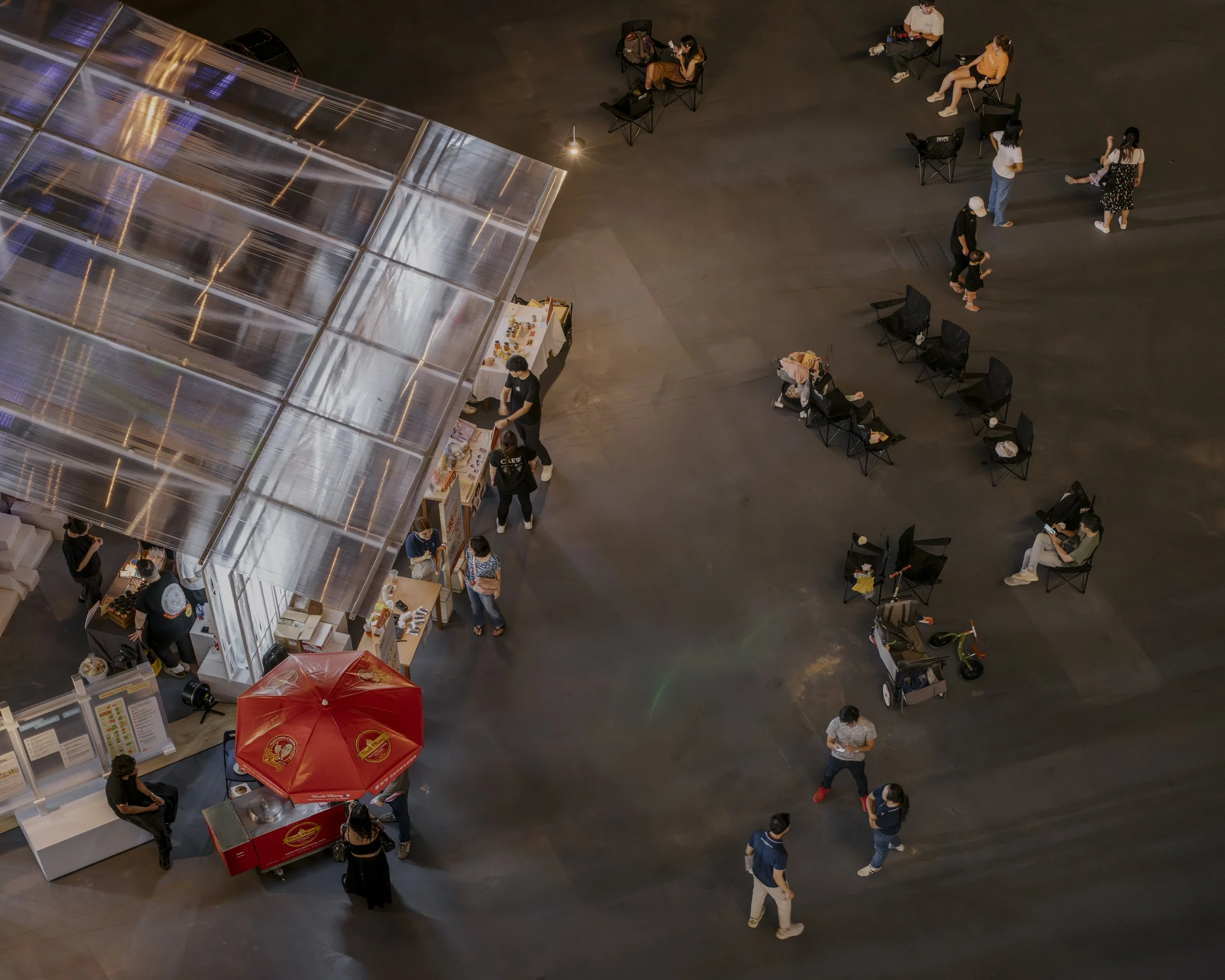 In contrast to the high-definition environment of Orchard Road, built on spectacle and consumption. This structure offers a temporary space for pause. Its porosity is deliberate: air, light, and people move through freely. Its rawness is not aestheticized, but accepted.